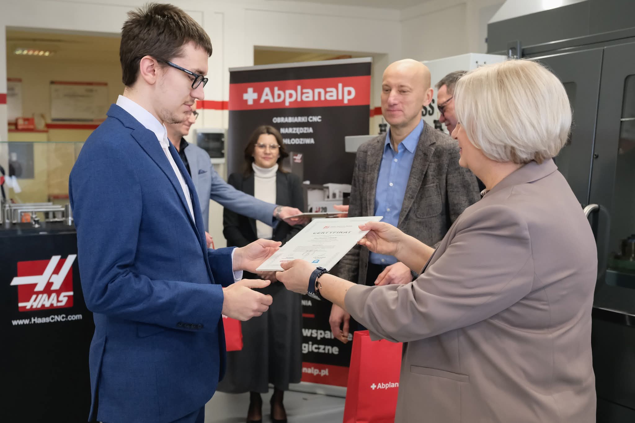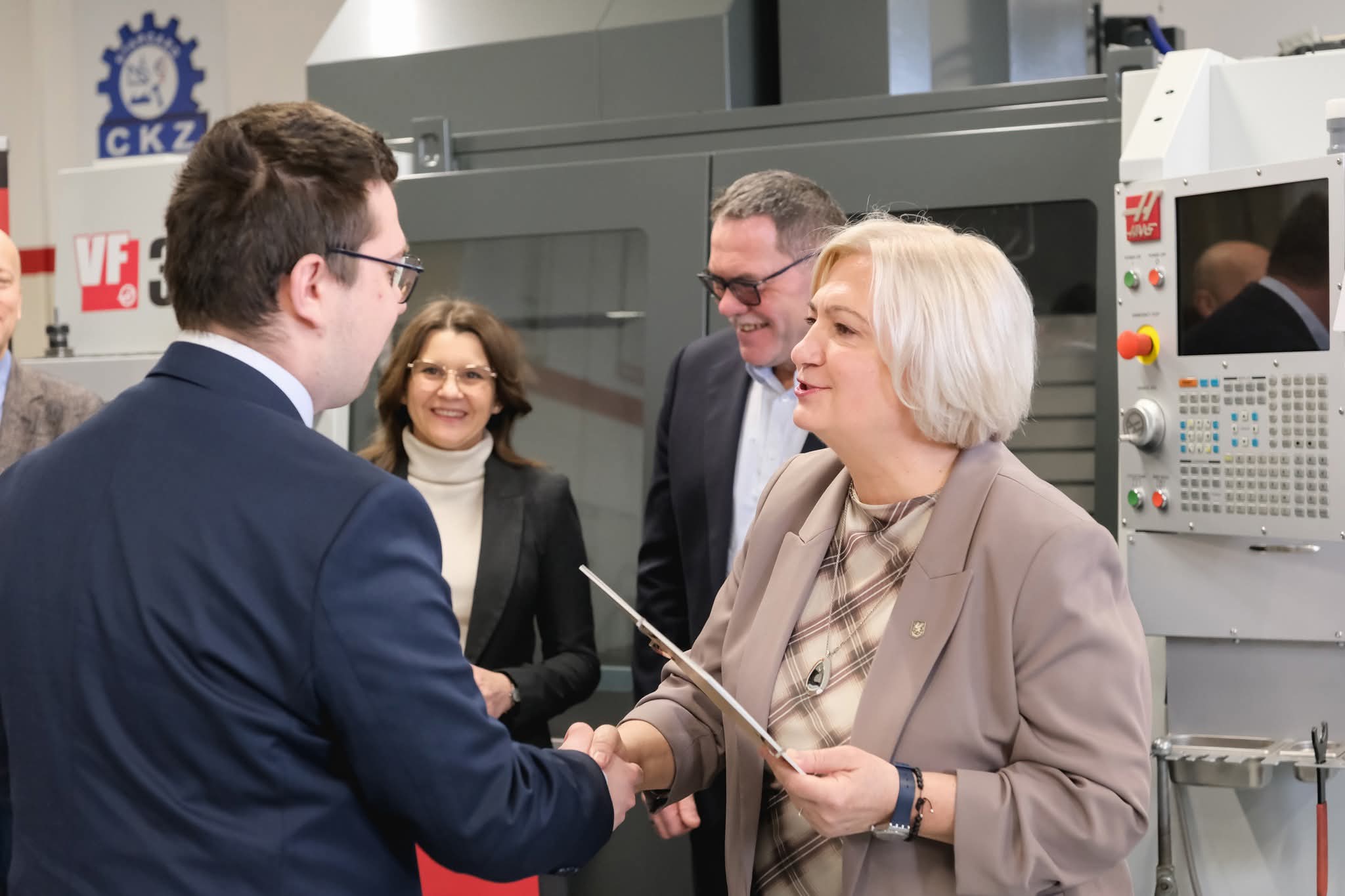 W dniu 27.03.2026 r. w Centrum Kształcenia Zawodowego w Stargardzie odbyło się kolejne uroczyste wręczenie certyfikatów „Certyfikowany operator obrabiarek Haas” dla uczniów piątej klasy technikum mechatronicznego Zespołu Szkół Nr 1 i Centrum Kształcenia Zawodowego w Stargardzie. Uczniowie zdobywali wiedzę i umiejętności praktyczne w zakresie programowania i obsługi maszyn numerycznych firmy Haas w czasie dodatkowych zajęć pozalekcyjnych.